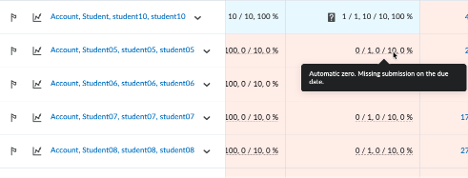 • Automatic zero will not affect grades retroactively. Manually grading missed submissions is still required in this situation.