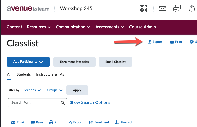 Instructors can now export Classlist details to CSV. The Export button enables full or partial user exports, mirroring Classlist view content for offline or administrative use.